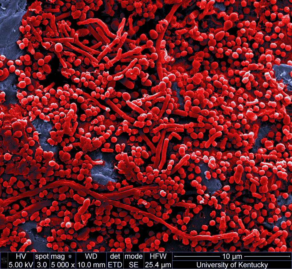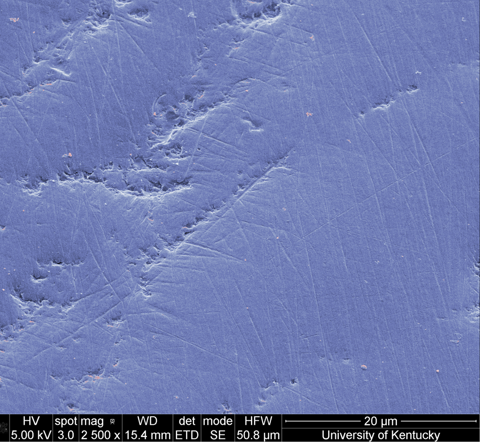 Test: The UK Department of Periodontics assessed Dental Defense Solution's ability to reduce biofilm on common dental work surfaces, including caps/crowns (polished zirconia), implants (titanium), and hydroxyapatite. DDS was applied to these surfaces for 30 seconds once daily for 10 days (5 days for mature biofilm) and reviewed under SEM.