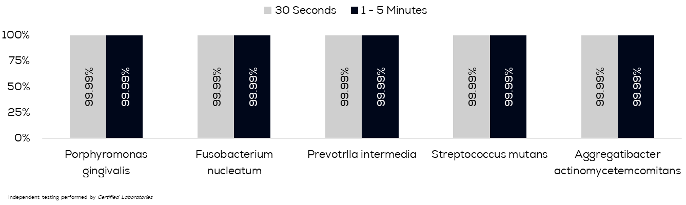 Result: "Dental Defense Solution indicates a 99.99% reduction of all tested pathogens in 30 seconds." View Full Report.